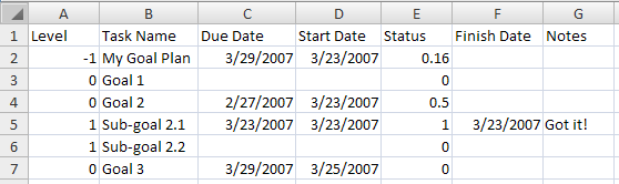 GoalEnforcer Hyperfocus adds a new data project export/import feature. You can now import data from spreadsheets or other applications by clicking the Open Button and selecting "Import". Project data can also be exported by clicking the save button, selecting Export and then "Export Project Data".