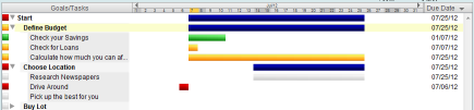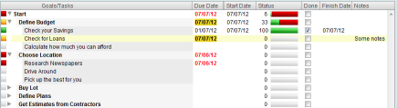 Once you have designed your goal map, you can quickly update the status of your goals and tasks by switching to the Outline View Mode. Click any field to change its contents or drag the status bar to update the percentage done. (watch video)