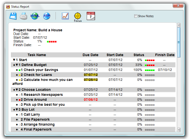 Generating status reports is as easy as clicking a button. Status reports can be exported in several different formats: Microsoft Word, Excel, CSV, HTML, and plain text. Keep yourself accountable: status reports can also be uploaded to the internet as a web page with our built-in internet file transfer or emailed to your family, friends, and co-workers with our built-in emailer.