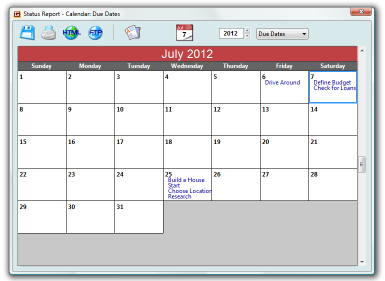 In calendar view mode, you can easily view the Due Dates, Start Dates and actual Finish Dates for your goals and tasks. See how easy it is to scroll the calendar up and down and locate your important dates.