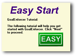 The first time you open GoalEnforcer, the software will take you through the "Easy Start Tutorial." The tutorial walks you through the program step by step, so you'll be ready to go in just a few minutes!